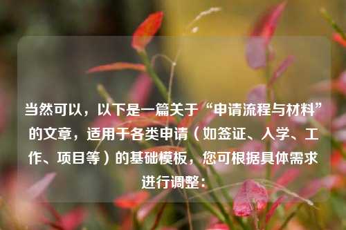 当然可以,以下是一篇关于“申请流程与材料”的文章,适用于各类申请(如签证、入学、工作、项目等)的基础模板,您可根据具体需求进行调整: